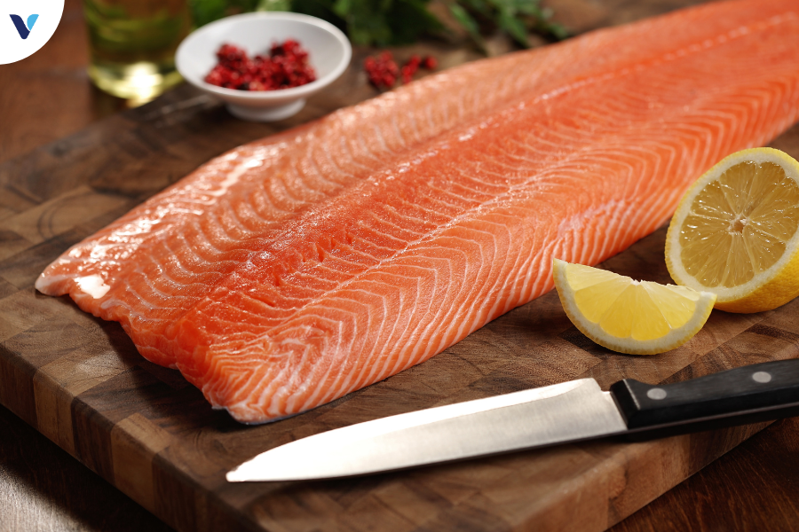 Cá hồi, cá béo, quả óc chó, hạt chia và hạt lanh... là những nguồn cung cấp omega-3 dồi dào. Ngoài ra, cá hồi và các loại cá béo cũng chứa rất nhiều vitamin D giúp kích thích nang tóc. Theo một nghiên cứu được công bố trên trang Pubmed, thuộc Viện Y tế quốc gia Mỹ, vitamin D cũng giúp kích thích các nang tóc không hoạt động và có thể ngăn ngừa tình trạng tóc mỏng, thậm chí hói đầu.
