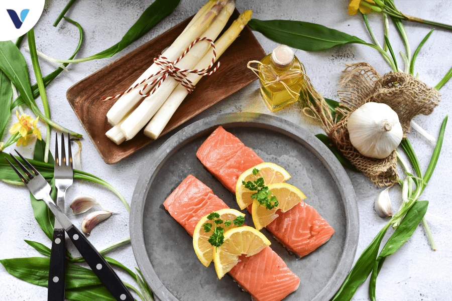 Bạn nên ưu tiên các thực phẩm giàu chất xơ như rau xanh, ngũ cốc nguyên hạt và trái cây tươi. Đồng thời, hạn chế các loại thực phẩm chế biến sẵn, đồ chiên rán, thực phẩm nhiều đường và muối. Cá là nguồn protein tốt và giàu axit béo omega-3, có tác dụng bảo vệ tim mạch. Thay thế thịt đỏ bằng các loại cá béo như cá hồi hoặc cá thu có thể giúp giảm nguy cơ đột quỵ.