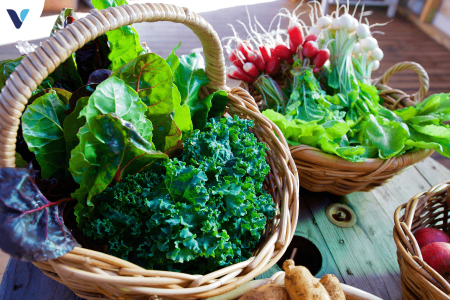 - Ưu tiên rau xanh và trái cây: Các loại rau xanh, trái cây tươi, và ngũ cốc nguyên hạt chứa nhiều chất xơ và chất chống oxy hóa, giúp giảm cholesterol xấu và bảo vệ mạch máu.