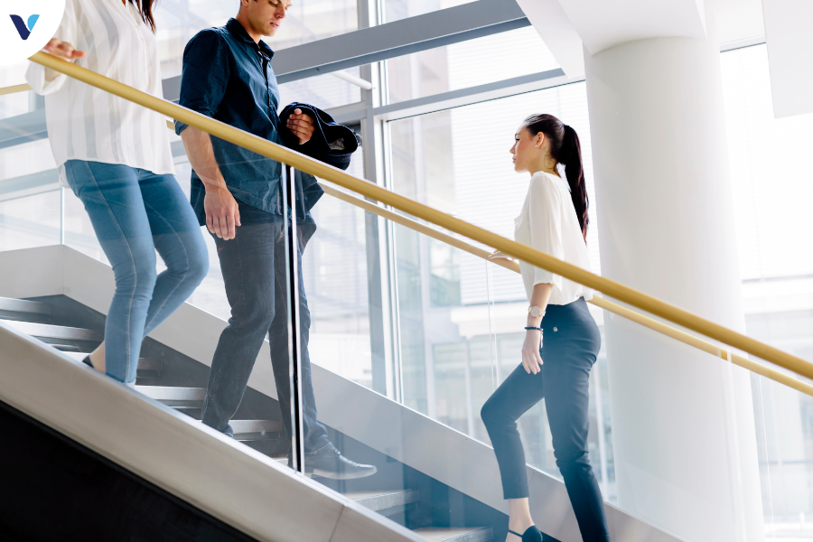 Bỏ qua thang máy và sử dụng cầu thang là một cách đơn giản để tăng cường vận động hàng ngày. Đi bộ lên cầu thang không chỉ giúp đốt cháy calo mà còn tăng cường sức khỏe tim mạch, cải thiện sức bền và sức mạnh của cơ bắp.