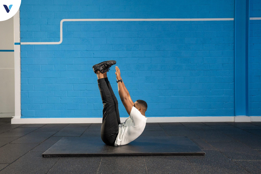 Toe Touches tập trung vào cơ bụng trên và dưới, giúp săn chắc và giảm mỡ toàn diện.
