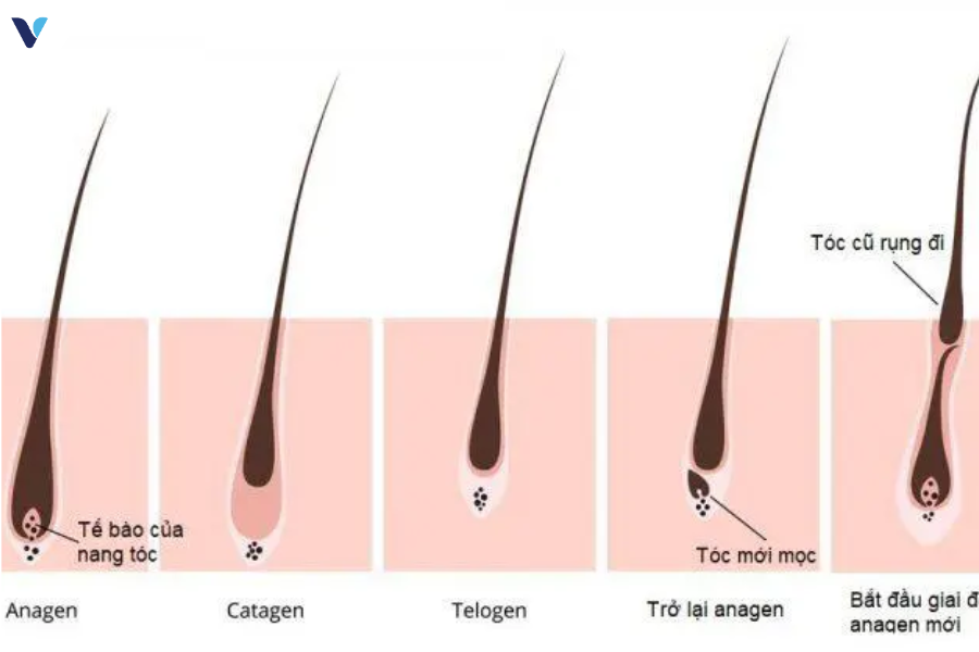 - Estrogen: Hormone này giúp tóc duy trì trong giai đoạn tăng trưởng lâu hơn. Khi mức estrogen giảm, tóc nhanh chóng chuyển sang giai đoạn nghỉ và rụng.