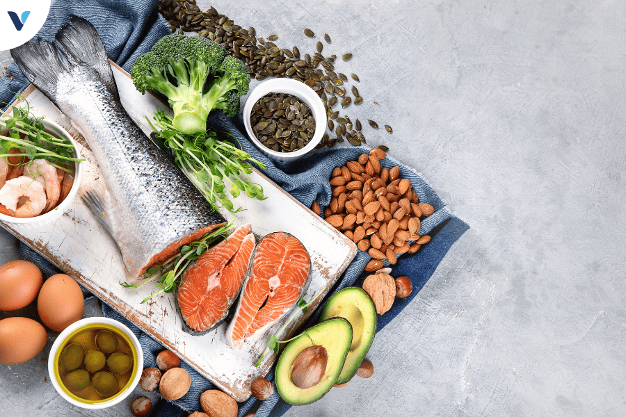 - Chất béo lành mạnh: Chất béo lành mạnh giúp cơ thể hấp thụ các vitamin tan trong dầu như A, D, E, K. Bạn có thể chọn các nguồn chất béo tốt từ quả bơ, dầu ô-liu, các loại hạt, và cá hồi.