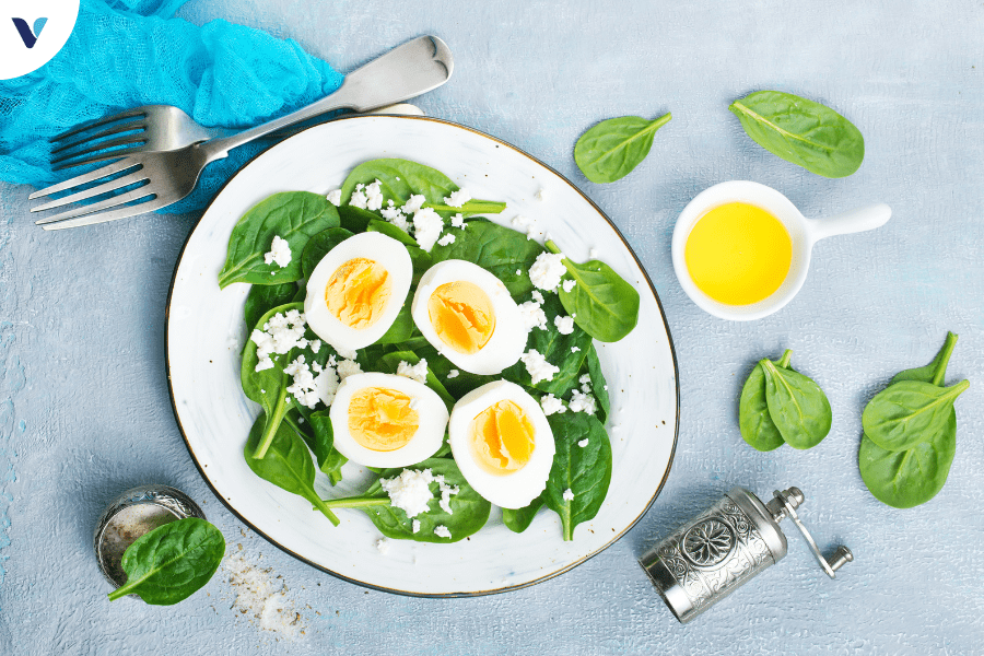 Trứng là nguồn protein tuyệt vời và dễ chế biến. Một vài quả trứng luộc kết hợp với rau xanh như cải bó xôi, cải kale sẽ tạo nên một bữa sáng giàu dinh dưỡng và ít calo. Bạn có thể thêm một chút dầu ô-liu hoặc hạt để bổ sung chất béo lành mạnh.