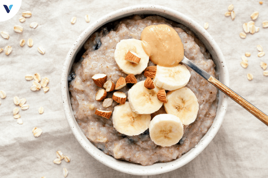 Yến mạch là nguồn carbohydrate phức tạp giúp cung cấp năng lượng lâu dài và giàu chất xơ. Bạn có thể kết hợp yến mạch với các loại trái cây như chuối, táo, việt quất để thêm vị ngọt tự nhiên và chất chống oxy hóa. Thêm một ít hạt chia hoặc hạt lanh để tăng cường lượng protein và chất xơ.