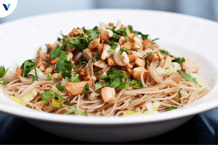 Bún gạo lứt là một nguồn carbohydrate phức tạp giúp duy trì năng lượng lâu dài. Kết hợp bún gạo lứt với rau xanh như cải thìa, rau muống và thêm chút đậu phụ sẽ tạo nên một bữa sáng bổ dưỡng và ít calo.