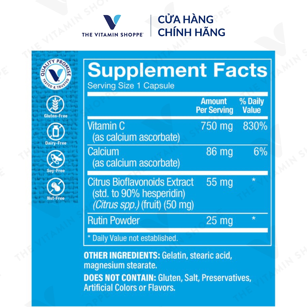 Vitamin C (dưới dạng canxi ascorbate): 750 mg