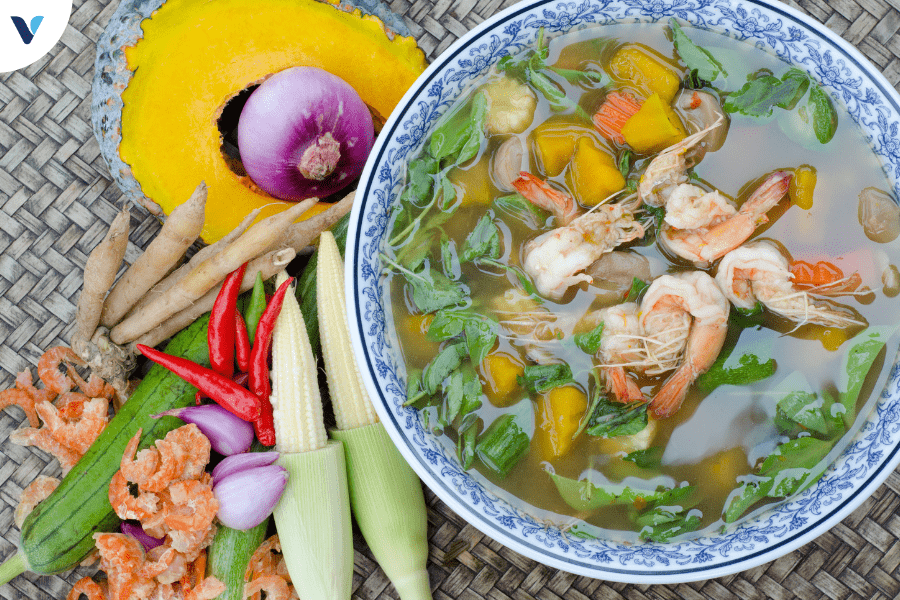 Một tô súp rau củ nóng hổi không chỉ đem lại cảm giác no lâu mà còn rất ít calo. Bạn có thể thử nhiều loại súp khác nhau như súp bí đỏ, súp cà chua, hoặc súp lơ xanh. Thêm một chút gừng hoặc tỏi sẽ làm tăng hương vị cũng như giá trị dinh dưỡng cho món súp.