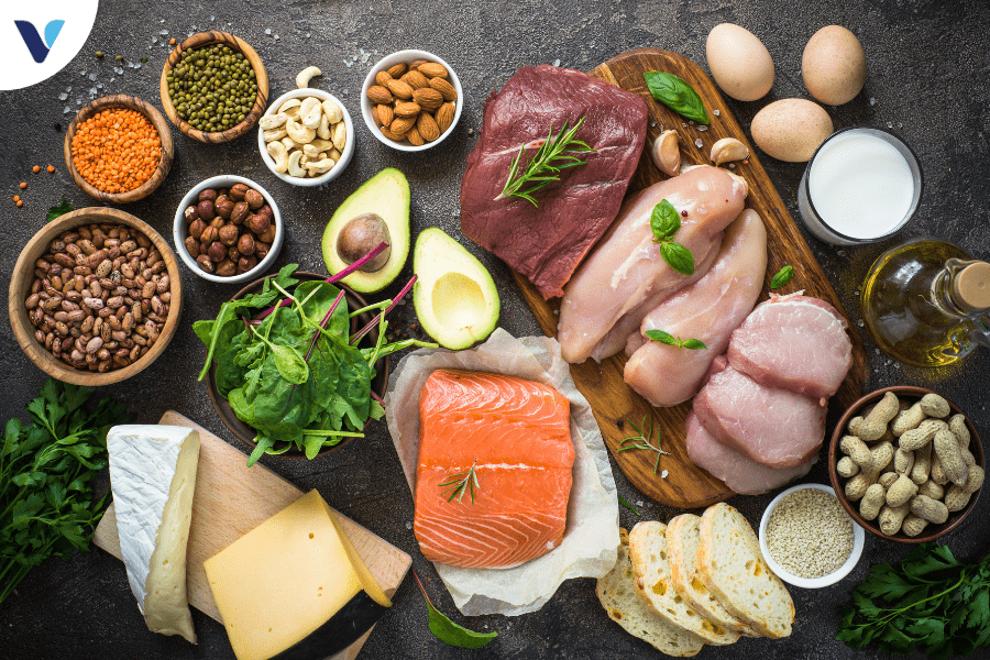 Cố gắng bổ sung khoảng 50-70g protein mỗi ngày từ cá, trứng, đậu và các nguồn thực phẩm lành mạnh khác.
