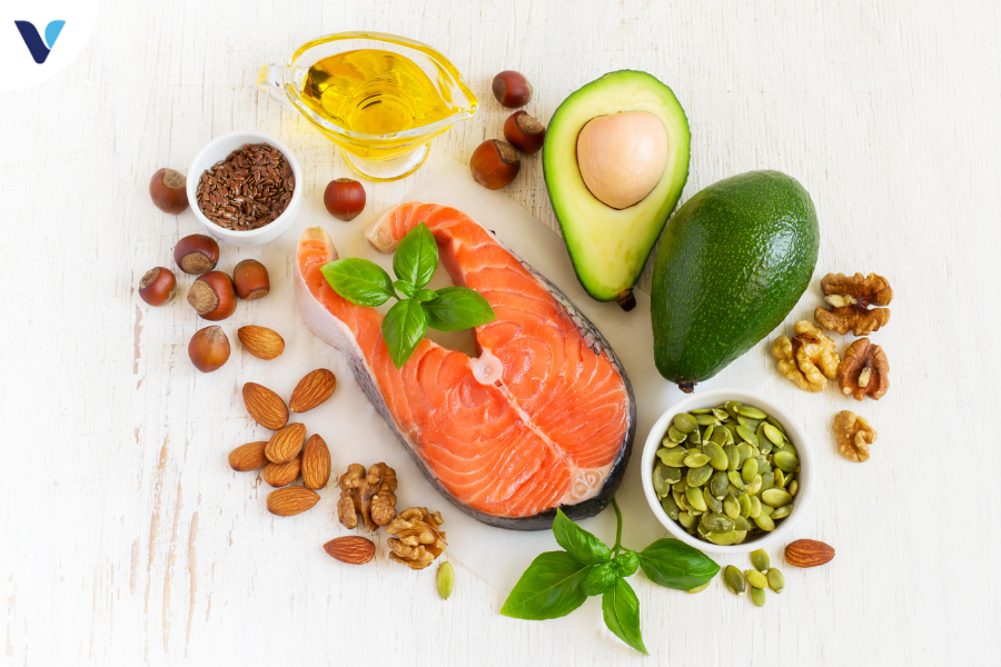 Bổ sung omega-3 từ các loại cá béo (cá hồi, cá thu), quả óc chó, hạt chia và dầu cá. Nếu không ăn cá, có thể sử dụng viên uống bổ sung omega-3 theo hướng dẫn của bác sĩ.