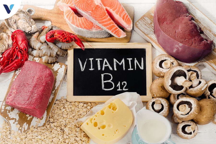 - Ăn thực phẩm giàu B12 như thịt đỏ, hải sản, trứng, sữa.