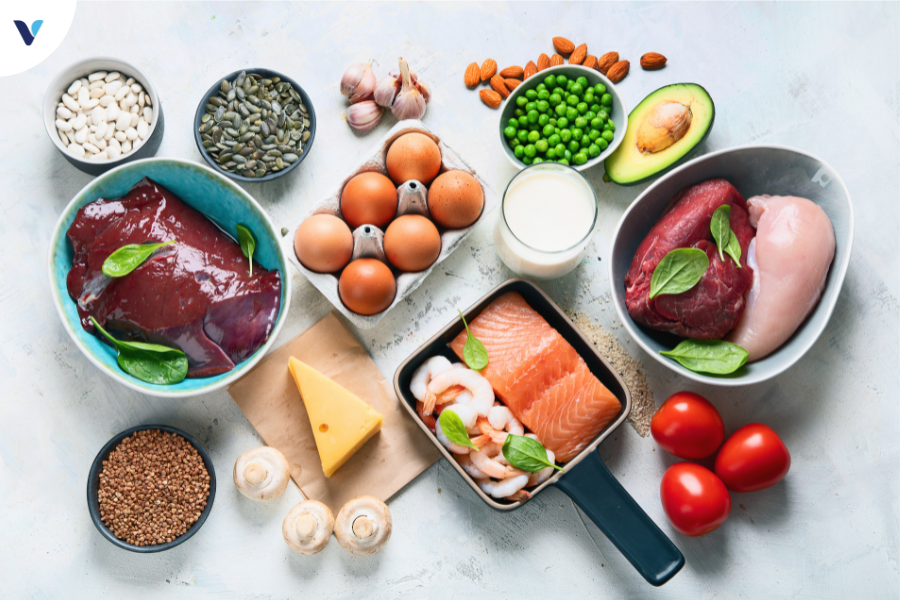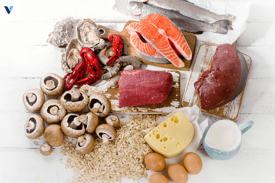 Một số thực phẩm giàu vitamin B12 thường gặp là gan động vật (gan bò, gan ngỗng, gan cá tuyết,…), cá biển, sữa, sữa chua, phô mai, bơ, thịt đỏ và ngũ cốc nguyên cám.