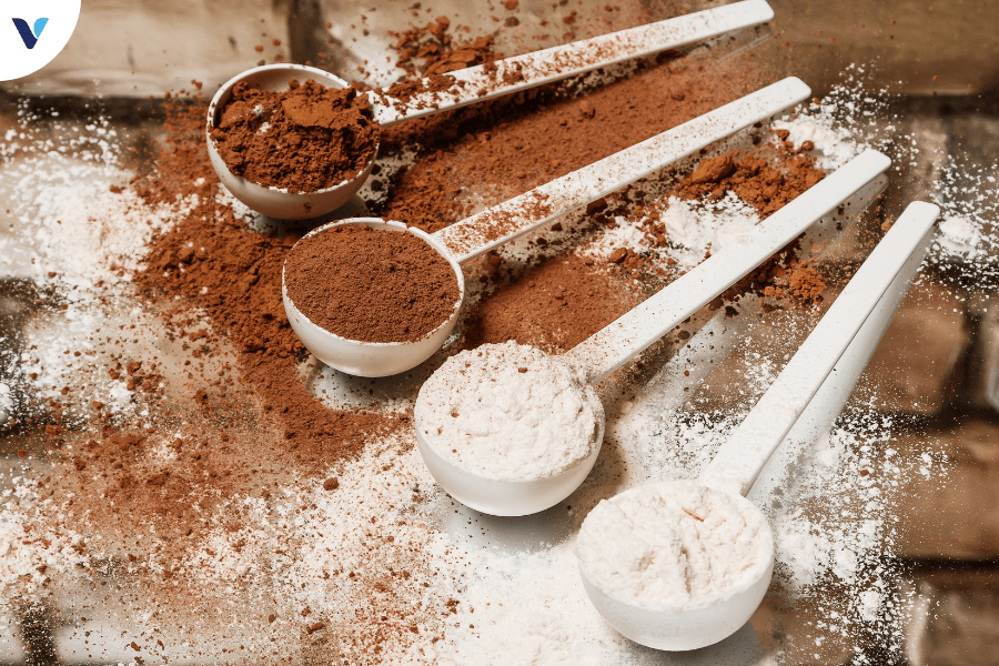 Mass tăng cân chứa lượng lớn protein để hỗ trợ xây dựng và phục hồi cơ bắp. Các loại protein phổ biến bao gồm whey protein concentrate, whey protein isolate, casein, và protein từ nguồn thực vật như đậu nành, đậu hà lan, và gạo lứt. Đây đều là những thực phẩm rất quen thuộc trong chế độ ăn uống hằng ngày. Nhưng điểm khác biệt chính là chúng được xử lý và tinh lọc để tạo ra nguồn protein cao cấp, cung cấp cho cơ thể chuỗi axit amin đầy đủ nhất.