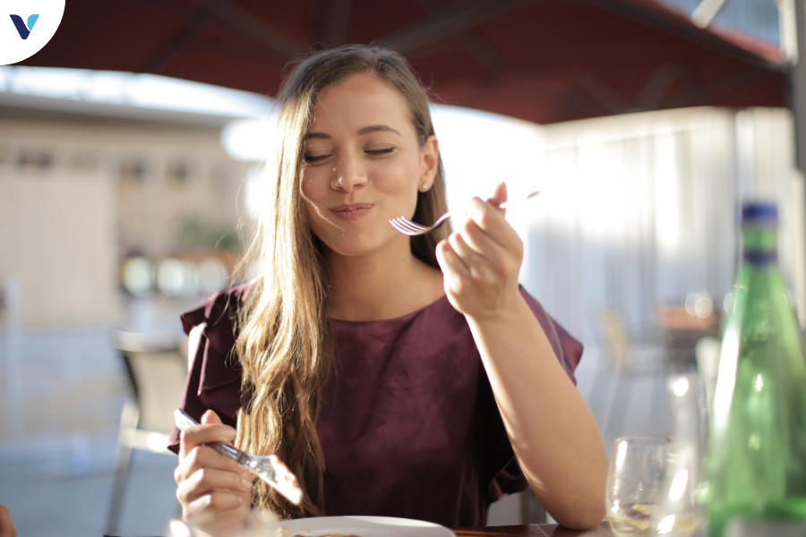 Ăn chậm, nhai kỹ giúp bạn nhận rõ hơn các tín hiệu từ cơ thể, biết dừng lại khi vừa đủ no. Như vậy, bạn có thể khống chế lượng thức ăn nạp vào mà không cần phải tính toán quá chi tiết lượng calo của từng món. Ăn chậm, nhai kỹ cũng giúp tiêu hóa dễ dàng hơn, hạn chế tích tụ mỡ thừa.