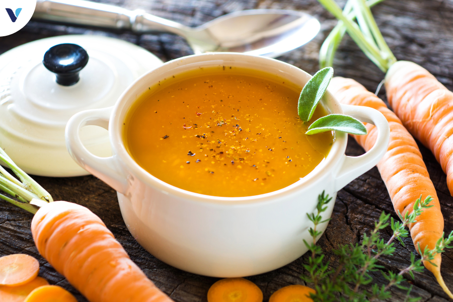- Súp và nước súp: Súp là một lựa chọn tốt cho mùa đông. Súp nóng có thể giúp bạn cảm thấy no và ấm áp. Hãy chọn các loại súp chứa rau cải, thịt gà hoặc cá, và không quên thêm các loại gia vị và hạt để tạo thêm hương vị.