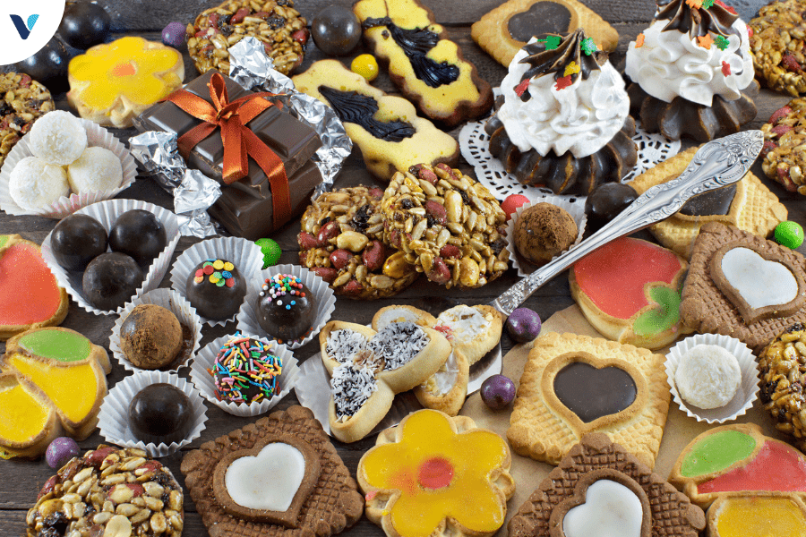 Đồ ngọt giàu đường có thể gây ra tăng đường huyết và tiểu đường, các yếu tố nguy cơ cho sức khỏe mắt. Tiểu đường có thể dẫn đến các biến chứng như thoái hóa võng mạc do tiểu đường, cản trở lưu thông máu đến mắt và gây tổn thương các tế bào thị giác. Ngoài ra, đường cũng có thể gây viêm nhiễm và tăng nguy cơ phát triển các bệnh về mắt như đục thủy tinh thể và tăng nhãn áp.
