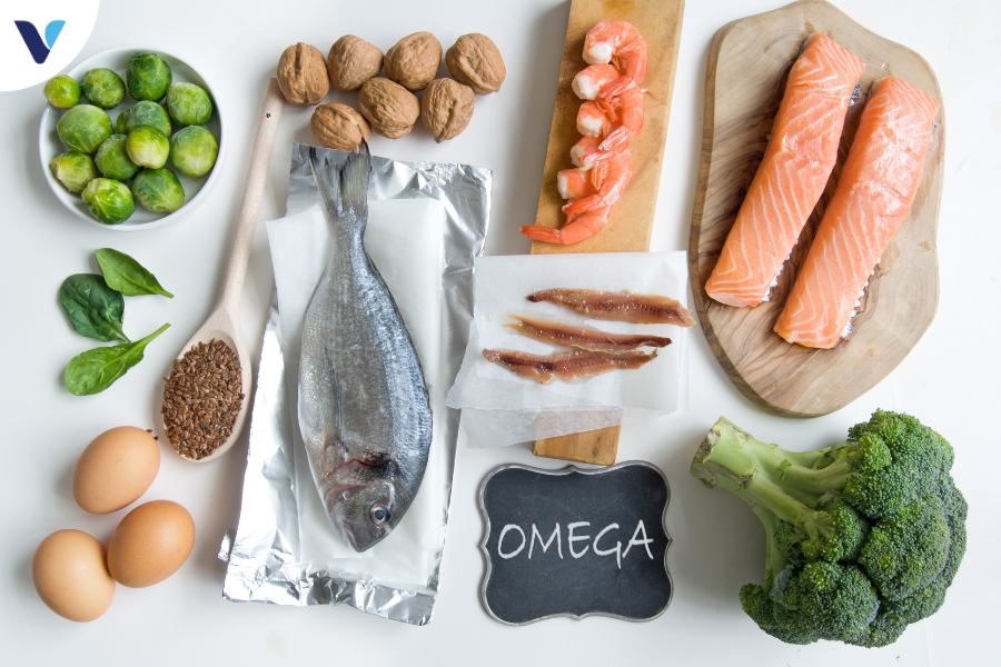 Loại axit béo này thường có nhiều trong các loại cá béo như cá hồi, cá thu, cá ngừ, cũng như trong hạt lanh, hạt chia và quả óc chó. Omega-3 nổi tiếng với khả năng bảo vệ tim mạch và cải thiện chức năng não bộ.