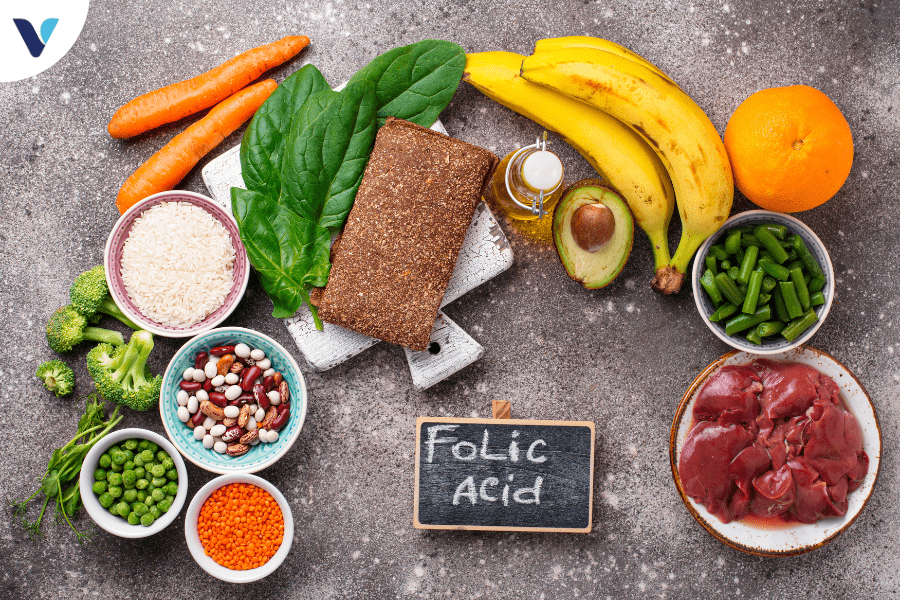 - Acid folic: Rất quan trọng trong việc ngăn ngừa các dị tật bẩm sinh ở thai nhi. Các nguồn thực phẩm chứa nhiều acid folic bao gồm rau bina, súp lơ xanh, đậu và các loại hạt.