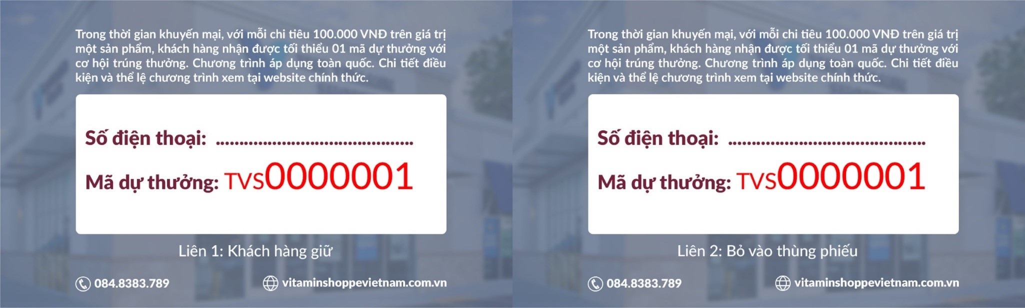 - The Vitamin Shoppe Việt Nam phát hành số lượng phiếu dự thưởng tương ứng với số lượng mã dự thưởng khách hàng nhận được theo quy định tại mục 8.1.1.