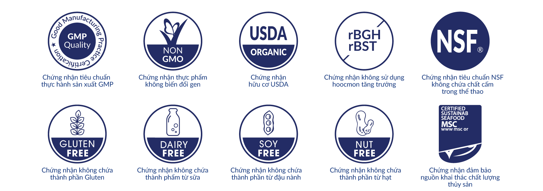 Các chứng nhận mà sản phẩm của The Vitamin Shoppe đã đạt được: