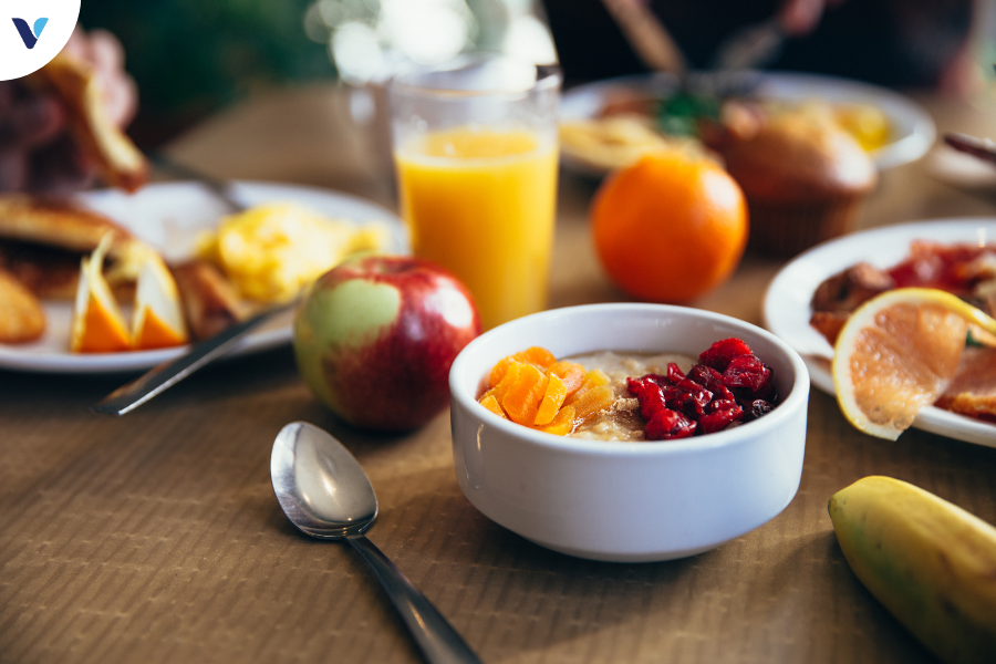 Bỏ qua bữa sáng có thể khiến bạn cảm thấy đói và tăng cảm giác thèm ăn vào cuối ngày. Một bữa sáng cân đối với protein, chất xơ, và một lượng nhỏ chất béo lành mạnh sẽ giúp bạn no lâu và cung cấp năng lượng cho cả ngày.