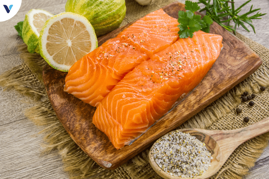 Cá hồi giàu omega-3, một loại chất béo không bão hòa có lợi cho việc giảm mỡ nội tạng.