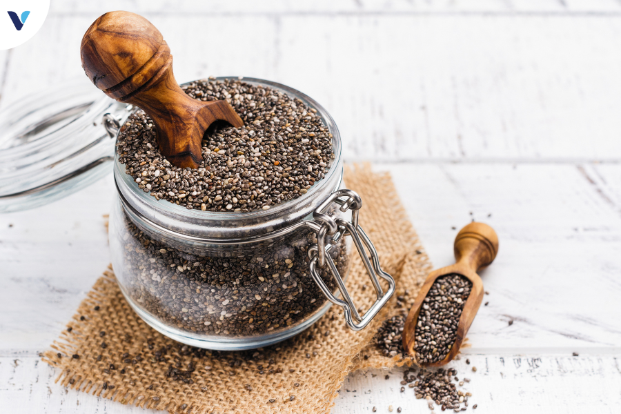 Hạt chia giàu chất xơ và omega-3, giúp no lâu và có thể giảm lượng mỡ nội tạng.