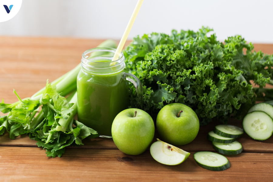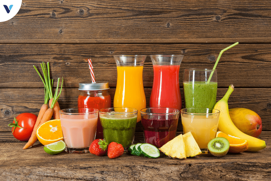 Nước ép rau củ là sự kết hợp của nhiều loại rau củ quả giàu vitamin, khoáng chất và chất xơ, giúp no lâu, hỗ trợ tiêu hóa và tăng cường trao đổi chất. Đây là lựa chọn lý tưởng để bổ sung dưỡng chất mà không lo tăng cân.