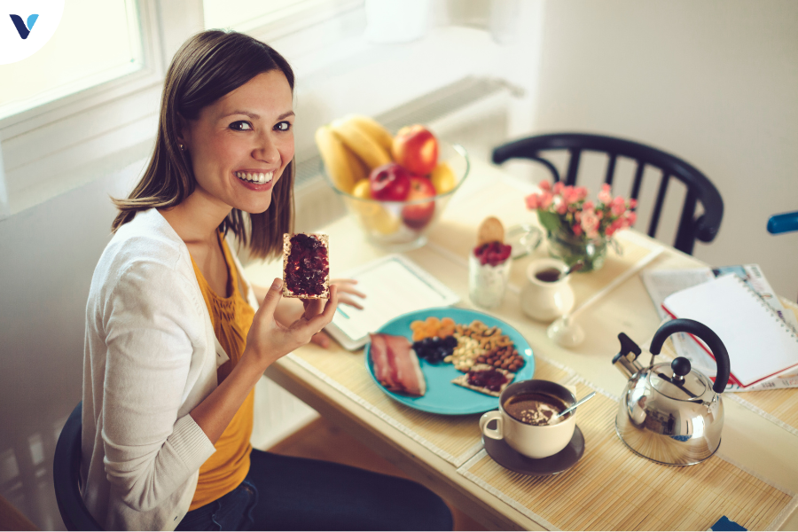 Bắt đầu ngày mới với bữa sáng vào khoảng 6 đến 7 giờ sáng không chỉ giúp kích hoạt quá trình trao đổi chất mà còn cung cấp năng lượng cần thiết cho cả ngày hoạt động. Một bữa sáng đầy đủ nên bao gồm protein, chất xơ từ ngũ cốc nguyên hạt, và một lượng nhỏ chất béo lành mạnh. Việc này không chỉ giúp bạn duy trì cảm giác no lâu, mà còn tránh được thói quen ăn vặt vô bổ vào cuối buổi sáng.