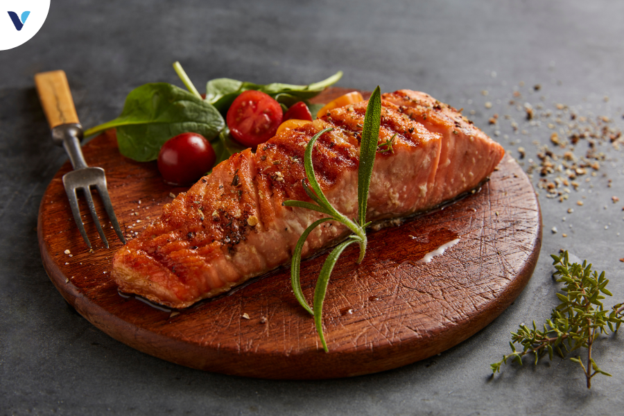- Vitamin B: Cá hồi chứa nhiều loại vitamin B, bao gồm B12, niacin và B6, hỗ trợ quá trình trao đổi chất và tạo năng lượng.