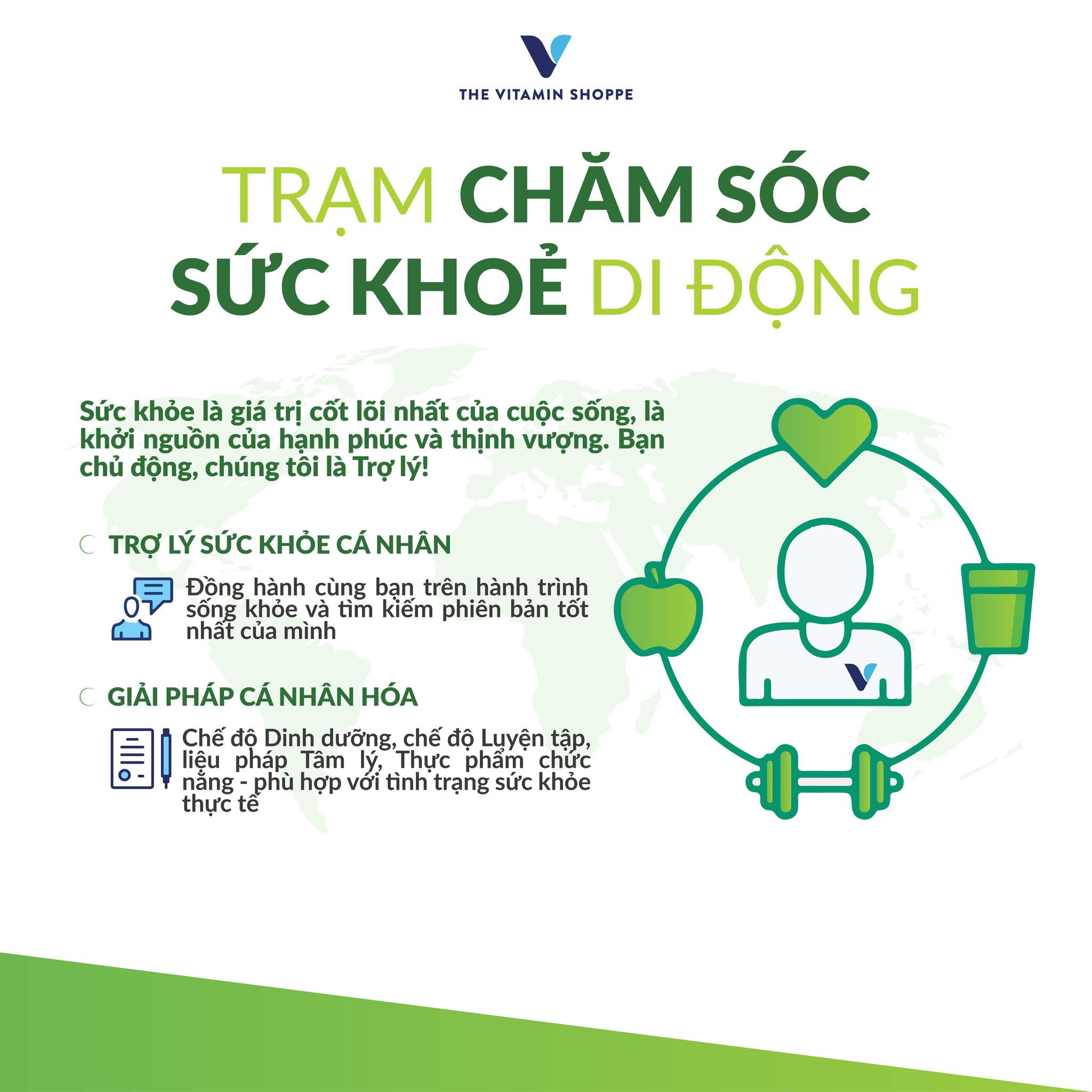 Với tâm niệm Sức khỏe là giá trị cốt lõi nhất của cuộc sống, là khởi nguồn của hạnh phúc và thịnh vượng, The Vitamin Shoppe Việt Nam trân trọng mang tới TRẠM CHĂM SÓC SỨC KHỎE DI ĐỘNG - với mong muốn nâng cao nhận thức cộng đồng về chăm sóc sức khoẻ chủ động.