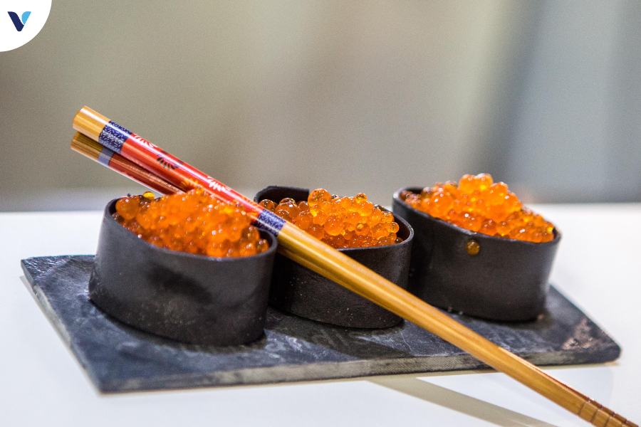 Trứng cá là một thành phần phổ biến trong món sushi. Trứng cá cung cấp 232IU vitamin D trong 100 g hoặc 37,1 IU trong một muỗng cà phê.