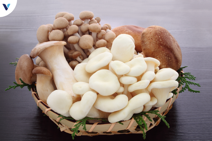 Không chỉ là thực phẩm có hàm lượng vitamin D cao, nấm cũng cung cấp vitamin B5 (pantothenic axit) và đồng. Loại nấm nút màu trắng cung cấp vitamin D nhiều nhất với 27 IU trong 100g.